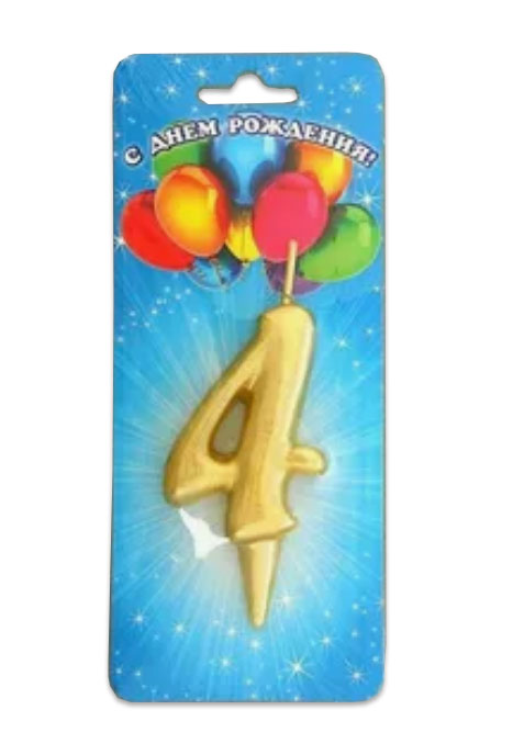 Свеча цифра Золотая 4